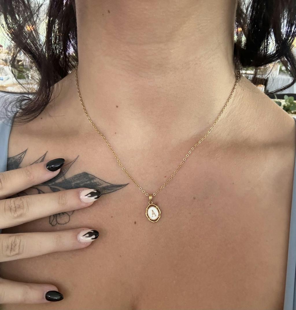 this necklace is so cute! I wear it every day and even wear it in the shower and doesn't tarnish.